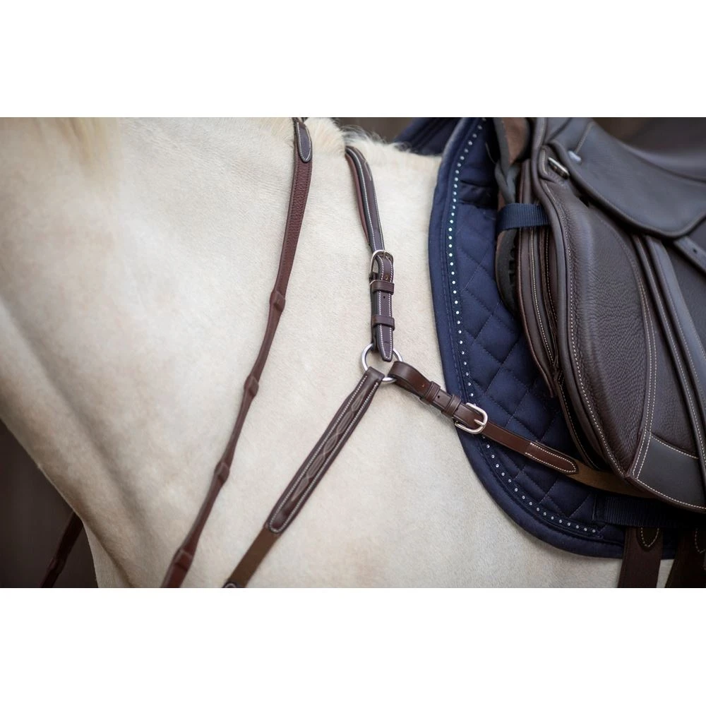 There is still our easily interchangeable gusset system, panels refillable with natural wool for a perfect adjustment, large panels to distribute the pressure, integrated under flaps including the cut-out to improve the lateral contact, a broad 3-points girthing allowing a distribution of the traction to place the saddle correctly, a wide pommel opening at the withers to avoid any “pinching”.